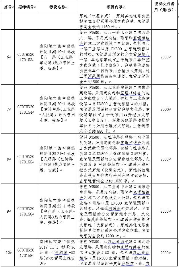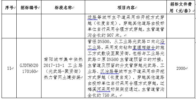 河南南阳热力二个技改、九个Ⅱ期工程热水管网施工工程招标