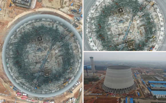 丰城电厂三期扩建工程是2015年12月28日开工,其中冷却塔项目(总高度165米)是2016年4月份开工,目前冷却塔已施工完成70多米。