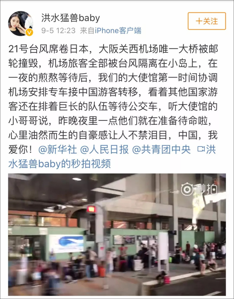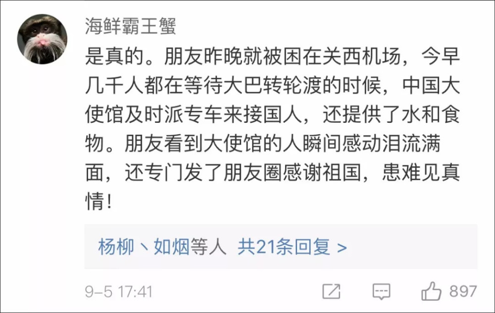 日本大阪关西机场被淹成孤岛后,上演了一出中国故事。