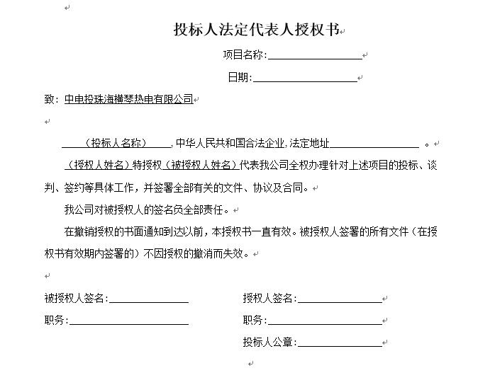 截标/开标地点:中电投珠海横琴热电有限公司综合办公楼401会议室。