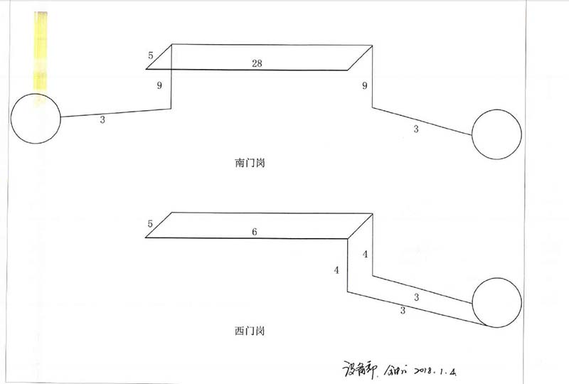 1.南门岗顶敷设40*2.5镀锌扁钢,扁钢平躺在顶上边缘处,用M8*50膨胀螺栓固定,固定点间隔2米布置。门岗东侧围栏外和西侧围栏外制作独立接地装置,采用40*40镀锌角钢2.5米长地极打入地下,3根地极呈120°布置,地极之间用40*40镀锌扁钢焊接连接成一个直径5米的圆。门岗东/西两侧沿外墙敷设镀锌扁钢至地面与独立接地装置焊接连接。见附图。