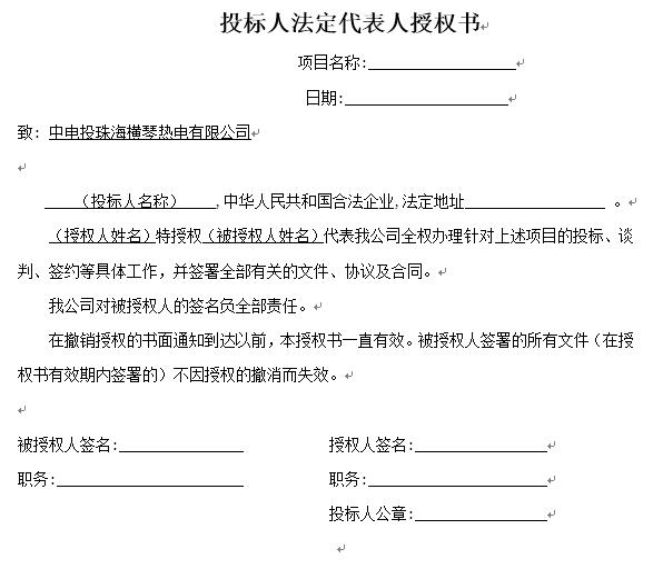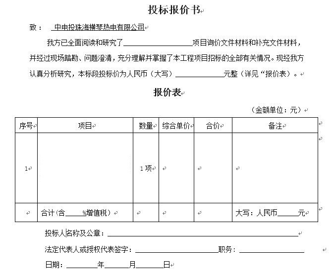 截标/开标地点:中电投珠海横琴热电有限公司综合办公楼401会议室。