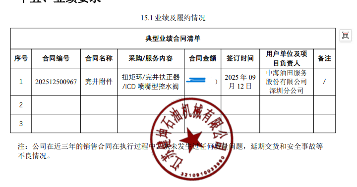 | 排序 | 中标候选人名称 | 投标报价(含增值税) | 评分或评标价 | 中标金额(含增值税) | 工期(交货期) | 质量 | 项目负责人信息 | 相关证书名称 | 证书编号 | 供应商资格能力条件 | | 1 | 江苏健坤石油机械有限公司 | CNY 1,062,200 | 940000.00 | CNY 1,062,200 | 满足询价要求 | 满足询价要求 | 不适用 | 不适用 | 不适用 | 不适用 |